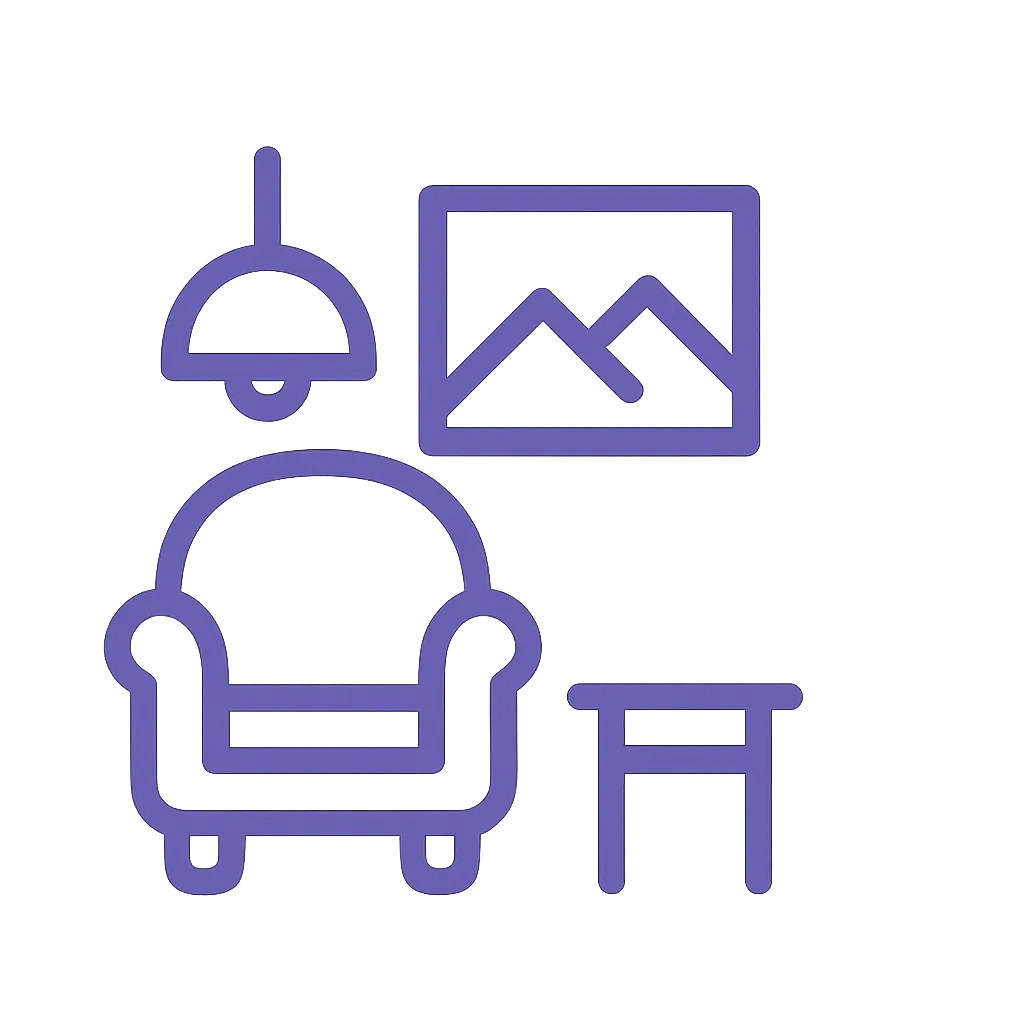 - Rośliny: paprocie, fikusy, sansewierie, monstera, dracena